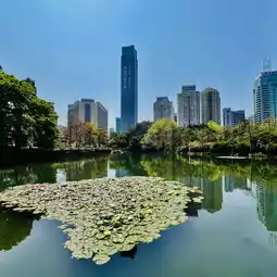 Lychee Park is located in the CBD area of Shenzhen, adjacent to Hongling Road in the east, Shennan Middle Road Museum in the south, residential area in the west and Hongli Road in the north. It was named after the park was built by digging a lake, building a pavilion, constructing a bridge and paving a road on the basis of an original old lychee forest of more than 500 trees and a low-lying rice field.