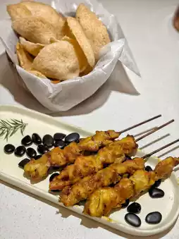 This skewered satay chicken selects fresh chicken, marinated in a special satay sauce, and grilled over charcoal fire until golden brown, charred on the outside and tender on the inside. Every skewer is mouth-watering, a must try! 🔥🍗