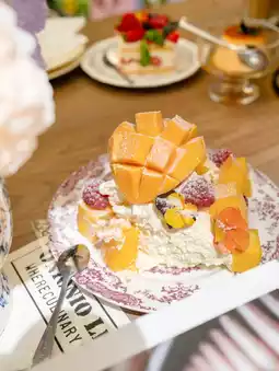 The waiter will push a dessert cart over, scoop out the cake with a big spoon, and top it with sweet mango flesh. The rich pandan flavor goes well with the sweet fruit without being too heavy. No wonder it is a popular dish.