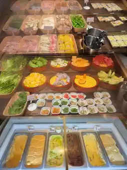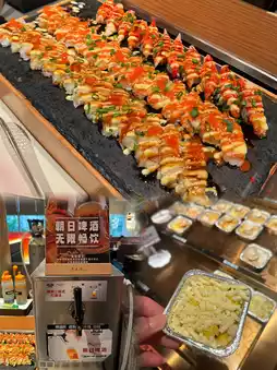 The buffet bar also has various meats, vegetables, fruits, and sushi🍣