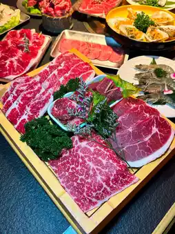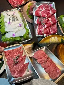 (Grain-fed special beef three tendons, Angus selected beef ribs, cal rupee specialty lean fat, beef five flowers, garlic steak, Angus secret beef shoulder) There are all different parts, cal rupee specialty lean fat and, garlic steak