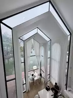 ✅ The center of the first floor, the high floor-to-ceiling glass view that reflects the ground