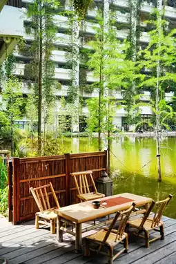 Stepping into Wutong Serviced Apartments feels like crossing into a parallel universe—outside is the bustling One Avenue Shopping Mall 🛍️, while inside you're surrounded by a rooftop garden filled with greenery, where guests brew coffee with tea aromas ☕ and use lake breezes to smooth out wrinkled shirts 👔.