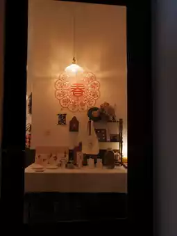 𖤐ˊ˗It is hidden in a small shop in a residential area, with a small garden seat at the door.