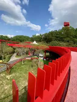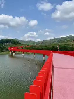 Like a bright red ribbon floating in the mountains, with birds singing and flowers blooming