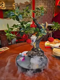 The Imperial Concubine Lychee Shrimp Balls are a visual and taste masterpiece from Jingwei Zhang! 😍 Fresh big shrimps coated with crispy batter and fried till golden and crispy🤤. The most eye-catching thing is its presentation method - the shrimp balls are hung on mini "trees" 🌳, which look like pearls picked by a concubine. It is very creative! 💯
