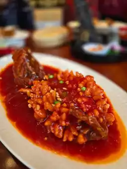 When you walk into Jingwei Zhang, you will be instantly surrounded by the strong Beijing style! 😍 The main color of the store is bright red, with Peking Opera elements🎨 and Chinese decorations. The atmosphere is both traditional and modern. ✨ Whether it’s a date with a couple 💑, a gathering with friends 👯♀️ or a family gathering 👨👩👧, the environment here is suitable for taking super beautiful photos 📷! 😎