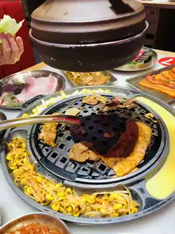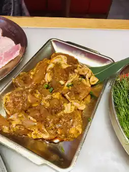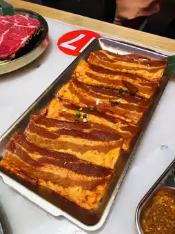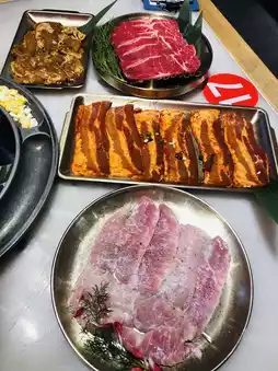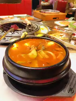 Located in KK ONE, "Han Guan Banquet" is a popular Korean restaurant recently known for its high-value set meals. The portions are generous, and the prices are budget-friendly! Signature dishes like Korean fried chicken, army stew, and stone pot bibimbap are all available, offering authentic flavors that diners praise as "affordable and hearty." Additionally, the restaurant's decor exudes Korean vibes, and you can get a free specialty drink 🥃 by taking photos and sharing them online. Whether you're dining with friends or looking for a photo-worthy spot, "Han Guan Banquet" is a great choice. This time, we tried a two-person set meal that included two plates of beef 🥩, chicken 🐔, pork 🐷, a stone pot rice dish, and side dishes 🥬 with customizable condiments. We also added a seafood 🦞🦐 kimchi soup rice dish, which was reasonably priced and tasted good—not overly spicy.