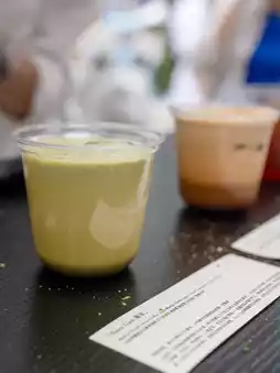 Many people come to buy their 4 cup combo, passing by I find quite attractive, there are matcha, green plum, from rich to fresh, the color is also very good looking.