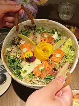 Mango Grapefruit Salmon Salad is refreshing and appetizing with rich ingredients, including mango, salmon, green apple, pear, grapefruit, salad vegetables and more.