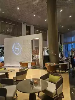 The hotel lobby has a unique design, with an extra-high ceiling and green plants, creating an atmosphere like an urban oasis, which feels quite high-end and beautiful. You can purchase afternoon tea packages in advance and enjoy them in the hotel lobby lounge, next to the buffet area. The price is quite affordable and the cost-effectiveness is extremely high. The afternoon tea is different from the usual three-tier design. This one is mainly savory, paired with wine and large portions of food. It is very suitable for men to enjoy and spend the entire afternoon happily.