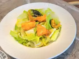 (The roasted pumpkin was tender and sweet, while the salad greens were very fresh. Paired with vinaigrette, it was especially appetizing.)