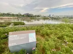 There is a curved rainbow bridge connecting the two sides of the lake, creating a beautiful landscape for Haoxiang Lake. There is also a lookout point by the lake for people to enjoy the lake view. Outside the park, there is a wall made of a large number of oyster shells, which is quite unique. In addition, there is a characteristic building that has been built into the current cultural and creative exhibition hall. It used to be a power plant in the 1980s and has great cultural and historical value.
