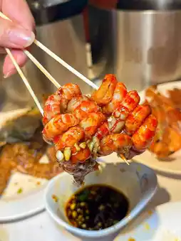 - A large plate of spicy crayfish 🦞, which you can peel and skewer, then drizzle with garlic sauce for extra flavor.