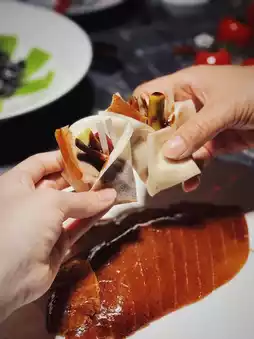 • Beijing Fruit Wood Hanging Oven Roast Duck: The king of popularity Roasted with fruit wood, crispy skin and tender meat, served with pizza and sauce, rich flavor layer, is the perfect presentation of Beijing tradition.