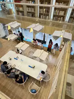 It is said to be the closest to the sea, right in front of this library is the Salt Marsh Coast, and in the distance you can see the Salt Marsh Harbor and container terminal, which is suitable for adults and children to read together