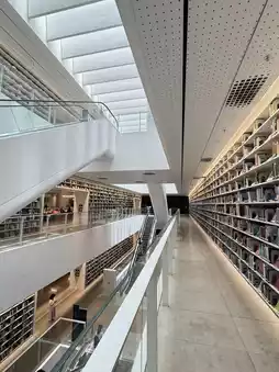 The entire library is very modern, with five floors, each floor has a large collection of books, almost wherever you see a wall, there is a bookshelf😮