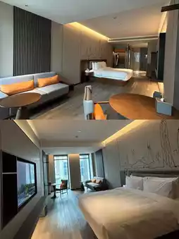 Step into the hotel lobby and be greeted by a seamless blend of modernity and art. Sleek, flowing lines define the stylish space, while warm, gentle lighting fosters a welcoming atmosphere. Carefully curated art pieces adorn every corner, infusing each space with distinctive character—like stepping into an art sanctuary that instantly soothes travel fatigue.