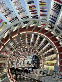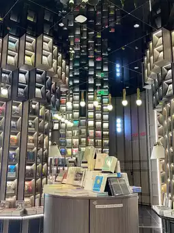 A bookstore that has been praised as one of the most beautiful bookstores in China. The store is located on the 1st floor of OH Bay Mall. The store is designed to look like a large spiral staircase of books.