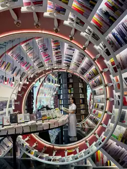 Zhongshuge Bookstore Shenzhen Branch is one of the most beautiful and charming bookstores I have ever been to. It is a bookstore with a unique interior design located in the OH Bay Mall, Shenzhen. When you walk in, you feel like you have entered another world—high curved bookshelves surround you, and the floor and ceiling are made of mirrors, making you feel like you are floating in a universe of books.📚The interior design of the store was designed by X+Living, which creates an atmosphere that combines modernity and art, using the floor and ceiling of mirrors to create a stunning optical illusion. The store is about 12,000 square feet and has about 45,000 books. Every corner is carefully arranged, with light, color, and structure, making it not just a bookstore, but a space that invites you to stop and be with yourself. And absorb the feeling in silence🎧If you are looking for a place that combines culture, design and peace to read a book, Zhongshuge Bookstore Shenzhen Branch is a must-see📌Travel coordinates • Opening-closing hours: Daily 10:00–23:00 • Transportation: Metro Line 5, get off at Linhai Station (purple line), exit B1 #Trendy #shenzhentrip #TravelChina #TravelChinaByYourself #china
