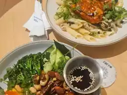 More vegetables, less meat, plus healthy whole grains, salad, rice or pasta, any choice, paired with coffee, tea or juice, it is really a balanced diet.