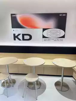 The storefront features a striking red color as its main theme, creating a bold and sophisticated look. Paired with minimalist tables and chairs, along with several modern art pieces, the entire shop exudes a sense of style.
