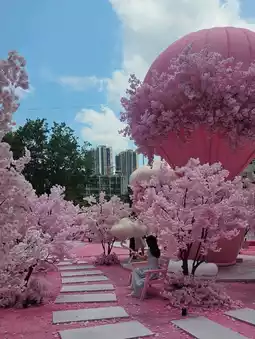 [One] Cloud Hot Air Balloon: Pink balloons and cherry blossom sea make you feel like floating into a fairy tale