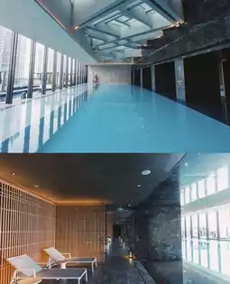 Located on the 7th floor, the fitness🏋️♀️ center and pool🏊 area feature a 23-meter indoor heated pool🏊♀️, a separate SPA pool💆♀️, and an outdoor leisure zone. Here, you can work out💪 while enjoying the stunning views of Qianhai🌊, allowing your body and mind to fully unwind😎~ Whether it's morning yoga🧘♀️ or an evening swim🏊♀️, you'll experience ultimate comfort and tranquility.🌿