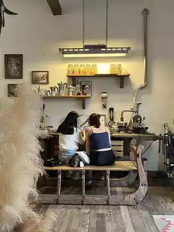 There are many well-designed coffee shops and restaurants on the 6th floor of Shenzhen Hongling Art Exhibition Center.