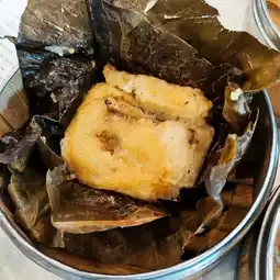 ~When you open the lid, steam with the aroma of lotus leaves hits you in the face - the Dragon Boat Festival limited edition scallop glutinous rice chicken, the sticky glutinous rice grains wrapped in salted egg yolks, unexpectedly tastes a bit like wrapped rice dumplings, and Pu'er with glutinous rice chicken is the most greasy.