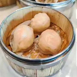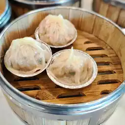 ~The crab roe siu mai is topped with orange-red seeds, and when you bite it, the gravy splashes out, with a faint truffle aroma.