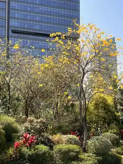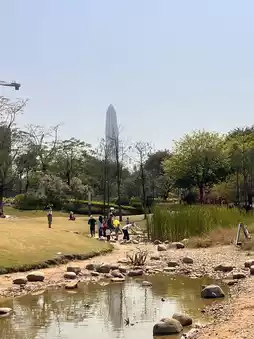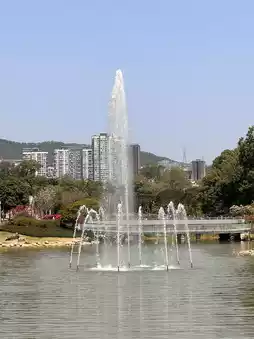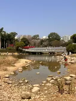 For a weekend family trip to Shenzhen, consider visiting Xiangmi Park to enjoy some fresh air. The park features gentle terrain, allowing visitors to leisurely stroll along mountain trails and elevated walkways amidst the forest. In autumn, you can admire the vibrant red leaves and bald cypress trees floating by the lakeside, creating a picturesque palette of orange and red hues. In spring, the park bursts into color with blooming yellow trumpet trees, firecracker flowers, and roses. Climbing the small hill within the park offers a chance to explore the forest from above while enjoying panoramic views of Futian's skyline.