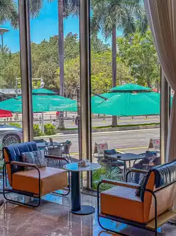 Inside, the hotel exudes a sophisticated blend of modern art and retro design, with a majestic lion statue at the entrance that looks incredibly regal🦁