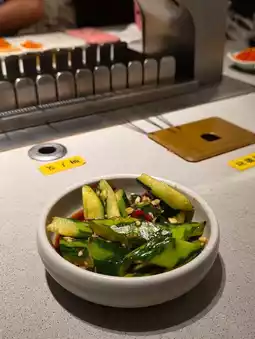 We ordered the signature kebab set for two, which comes with 19 skewers (beef ribs, Iberico pork belly, and chicken cartilage). With the main course, a cold side dish, and a drink, it's enough for two to three people.