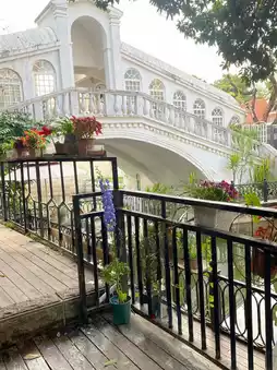 Near the café, there are water features and flowers, but there are also mosquitoes 🦟. You might want to use mosquito repellent or wear a light long dress (which also looks great in photos 🙈).
