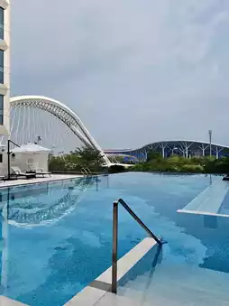 Located in the heart of Futian, Crowne Plaza Shenzhen Futian is renowned for its business-oriented atmosphere. Yet, its infinity pool offers a serene escape, like a tranquil oasis amidst the urban jungle. By day, the towering skyscrapers dominate the skyline, while at night, their reflections transform into a mesmerizing interplay of light and water, creating an almost surreal scene.