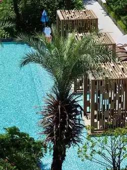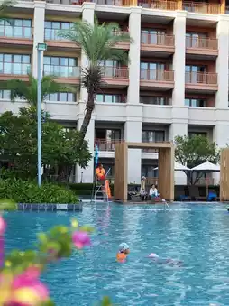 Lying on a poolside lounger, I quietly gaze at the distant boats dotting the horizon. The sea breeze brushes against my face as the water ripples gently. This place maintains just the right distance from the city, offering both convenience and tranquility. The pool's design extends to the visual boundary, making you forget where you are, as if you've leapt into the serene embrace of the South China Sea.