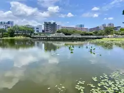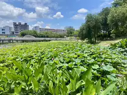 The lakeside in the park is adorned with a large number of lotus flowers. During spring, the blooming flowers create a mesmerizing sea of soft pink and lush green, making it a perfect spot for photography.