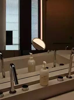 2️⃣ The hotel lobby is compact but instantly tranquil upon entry, shielding guests from external noise. During check-in, the butler serves a specially selected tea and offers three aromatherapy scents to sample. Your chosen fragrance will later be diffused in your room by the butler. Beyond your selected scent, all room amenities feature Le Labo products. These sensory touches enhance the serenity of the space, promoting restful sleep.