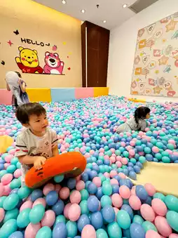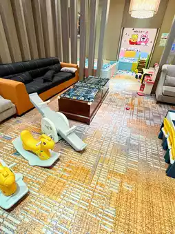 The hotel also has many children's play facilities with two large ball pools and children's pavilion, children can unwind, and the hotel lobby also has a pinball machine, racing boat racing airplane game machine 🚌Lisboy play until you can not leave😂