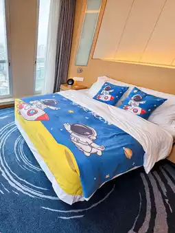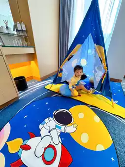 Lisboy's first birthday look is an astronaut, you can imagine how much he likes astronauts, Dragon Boat Festival holiday let's bring him to this star 🌟 Shenzhen Good Days Crowne Plaza Hotel 🏨 There are different parent-child theme rooms, but in the end we chose to explore the mystery of the universe theme suite🧑🚀Lisboy is so happy, and high-speed rail station 3 minutes walk to Co Park, nearby Co Park is also a large shopping mall!