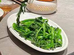 Garlic Stir-Fried Pea Shoots and Kale Sprouts 🥬🥬: Exceptionally fresh, vibrant, and crisp.