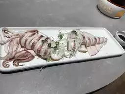 Fresh Whole Squid Tubes 🤠🤠: Paired with wasabi soy sauce 😎 for an unbeatable combination.