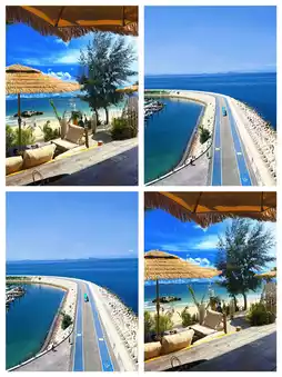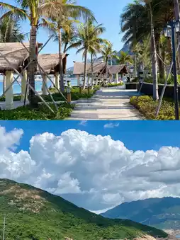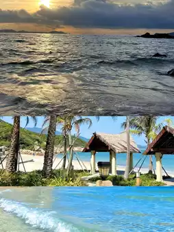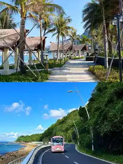 🎫Free entry (no hotel stay required). The blue runway paired with white yachts creates a Japanese film aesthetic. Best photo spot is on the slope between parking lot and beach. Ride the "Langqi Mini Train" (50 RMB one-way) along the picturesque blue coastal path for a relaxing experience.