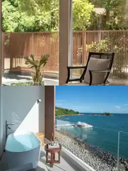 ▪️ Private hot spring pool + courtyard: Open-air heated pool with coconut trees and lounge chairs, private hot spring for autumn/winter, maximizing vacation vibes ♨