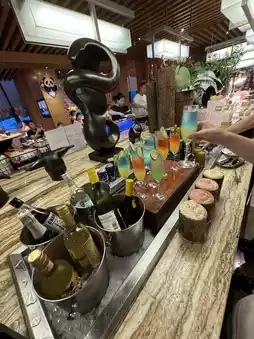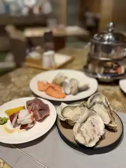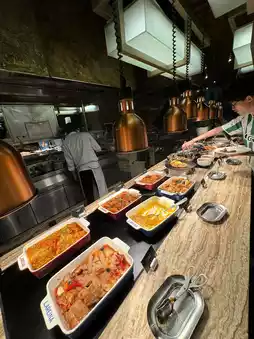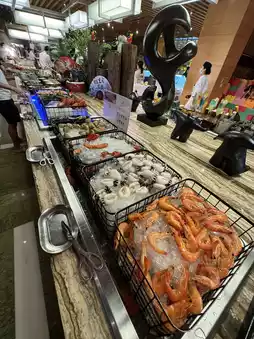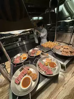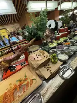 The star 🌟 hotel's buffet breakfast and dinner are very attractive, dinner is very high quality, there are ready-to-eat steak 🥩 lobster 🦞 goose liver, large oysters 🦪 😋 fresh ingredients are very plentiful, is a rare high-quality buffet dinner I saw, recently four Sichuan Food Festival themed buffet, you can have hot pot🍲 eat grilled oysters🦪 sashimi sashimi, cooked food, cold plates... and plenty of alcoholic drinks to drink🥂🍸 Finally, eat homemade panda 🐼 shaped dessert, a wide variety of food, all you can eat🌟