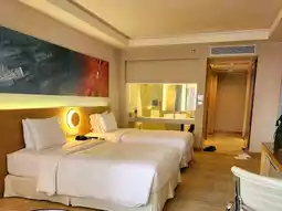 ⛱Hotel Environment: Features a swimming pool, fitness spa facilities, and an elegant green garden at the entrance