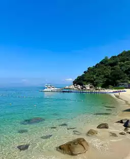 Not that Sanya isn't worth it, but this Shenzhen beach offers better value! Seriously! You won't want to leave once you're here—no crowds to deal with!! Even on weekends, you can have this glass sea all to yourself. We stayed overnight with the kids and quickly felt our fatigue melt away. Our room offered sunset views over the orange-tinted sea (~plus a floor-to-ceiling window with a large bathtub. The amenities were complete, and the TV volume was thoughtfully set to a considerate level—perfect for families with little ones. The hotel features a seaside pool, spa, gym, sound bowl therapy, KTV, game room, library, tea house, and a kids' playground, ensuring fun for both adults and children. With no other businesses nearby, the hotel has a 7-Eleven, both Chinese and Western restaurants, meeting all dining needs at surprisingly reasonable prices!! Drinks cost less than 10 yuan and taste authentic! To the left of the hotel, there's a shaded boardwalk perfect for a comfortable seaside stroll—don't miss it. Before you go, check these tips: • Choose a sunny day for better photos • Light-colored outfits photograph well • Enjoy a free 45-minute yacht trip (requires booking one day in advance) • Don’t forget sun protection: sunscreen, sunglasses, hats, and umbrellas.