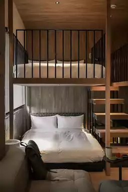 Checking into Shenzhen NOA Hotel that I've been longing to visit, the LOFT room greets me with exposed concrete columns exuding raw industrial tension, softened by warm lighting and the gentle touch of wooden stairs. The bunk bed design instantly transports me back to campus dorm days.