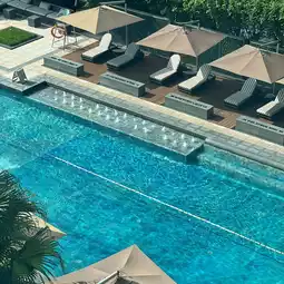 Located at the hotel's high floor, the infinity pool seamlessly blends the blue water with the city skyline. Relax on a floating bed, gently dipping your toes in the water, while the towering skyscrapers stretch out before you. At dusk, golden sunlight spills across the pool, reflecting dazzling brilliance on the water's surface. Every casual snapshot looks like a fashion magazine cover. 📸